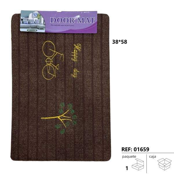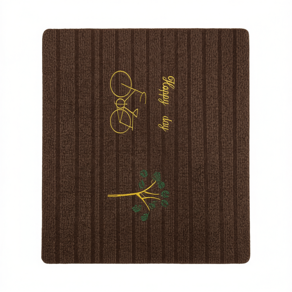 Tappetino per porta marrone con disegno ricamato di bicicletta e albero 38x58 cm per uso in ingresso