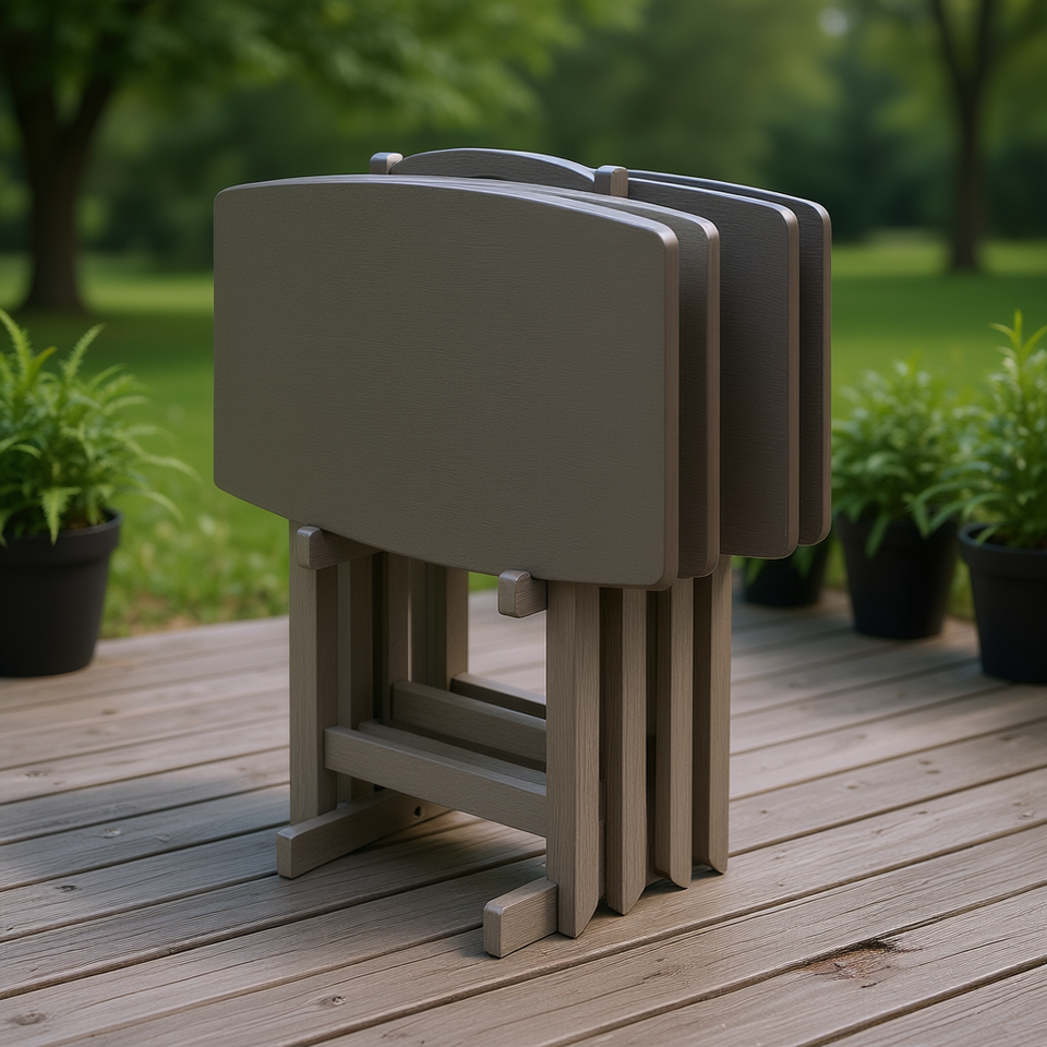 Set da 5 Pezzi Dorian Grigio Ostrica per Tavolini da Snack, Impilabile, per Esterni, in Legno Massello, Design Contemporaneo