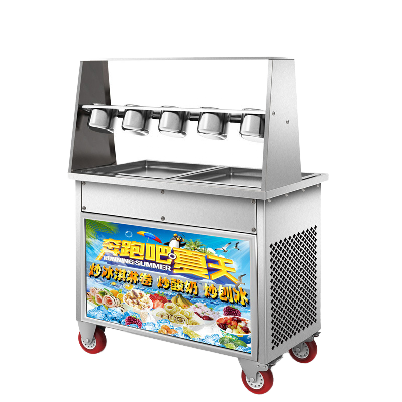 Double Flat Round Pan/Double Square Pan Fried IeCream RollMachine