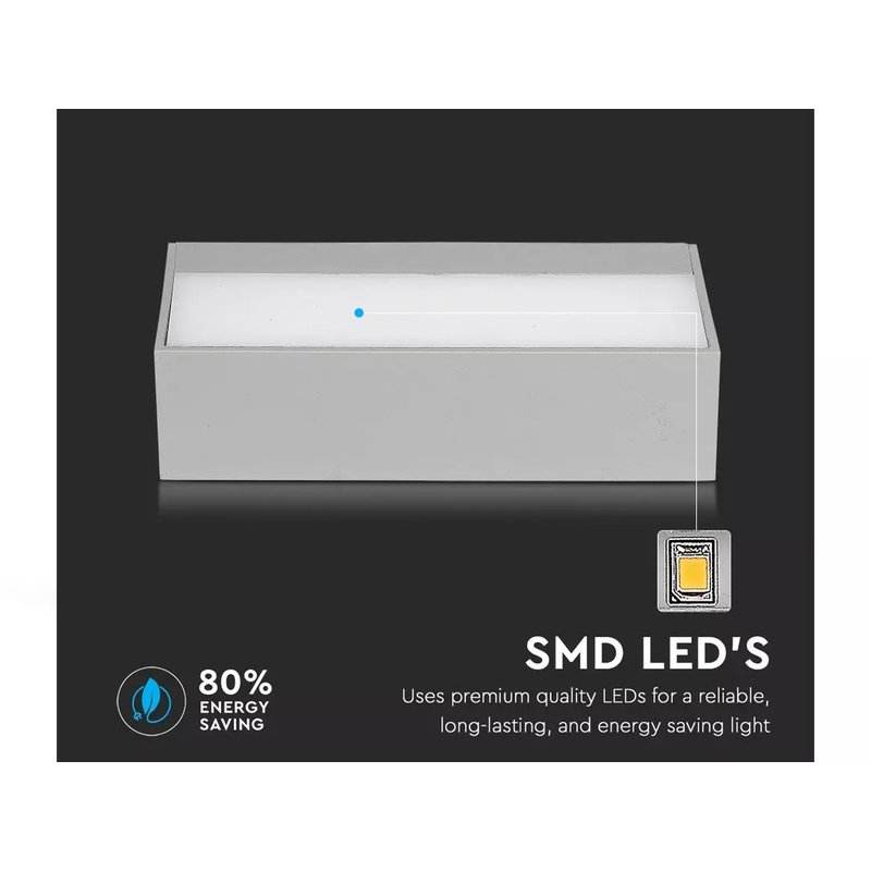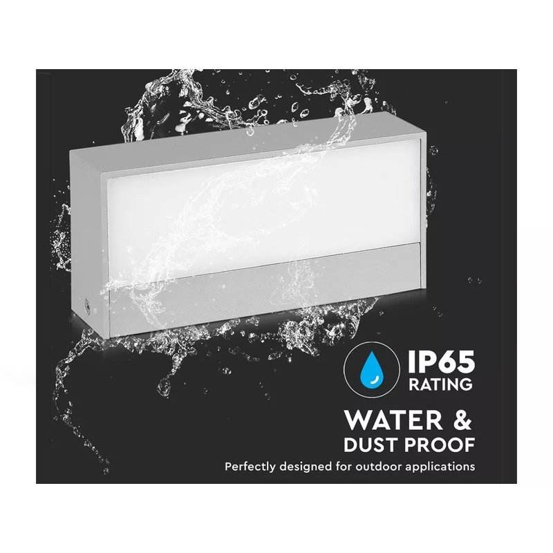 Lampada da Parete LED a Doppio Fascio 12W, Finitura Grigio Chiaro, Luce Bianca Calda 3000K, Impermeabile in Alluminio per Uso in Giardino IP65 SKU-218242