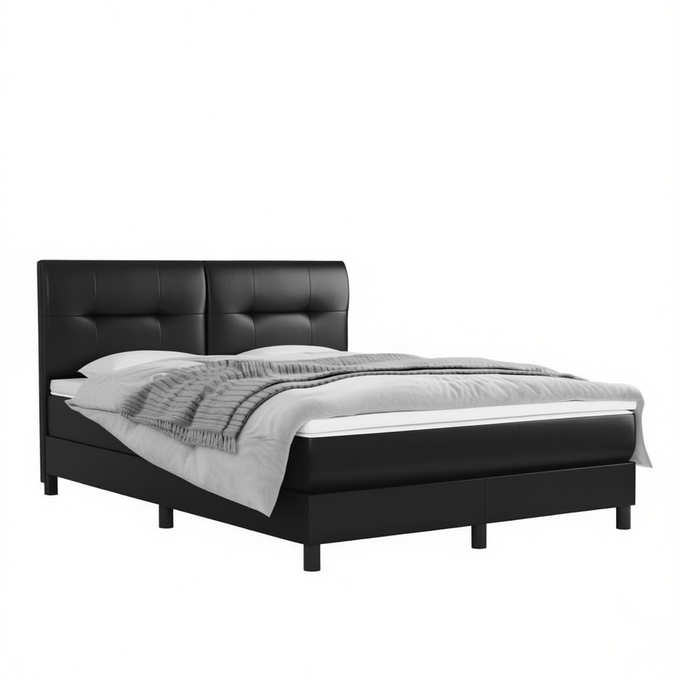 Letto Matrimoniale Moderno con Struttura in Legno e Rivestimento in Ecopelle Nera