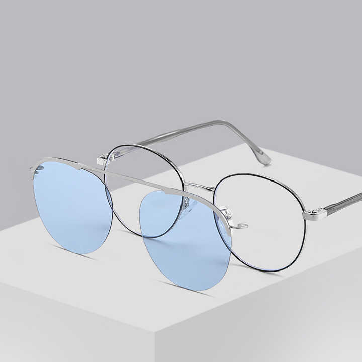 Occhiali da vista a doppio ponte con montatura grande da uomo, con clip magnetica polarizzata per occhiali da sole, occhiali da vista alla moda