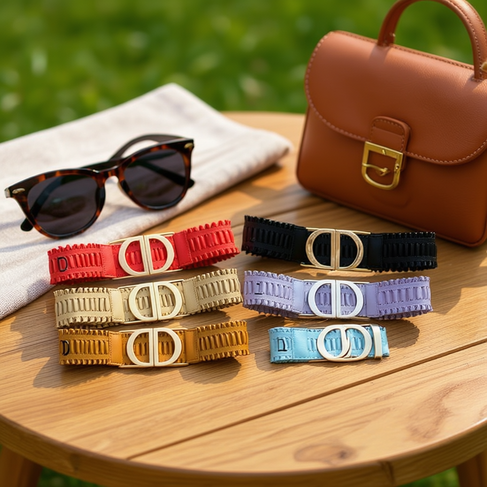 Cintura elastica in PU con doppia fibbia e design con lettera D, alla moda, per donna e uomo
