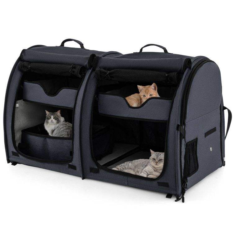 Double Compartment Pet Carrier with 2 Removable Hammocks Premium Quality Travel Accessories for Your Furry Friends