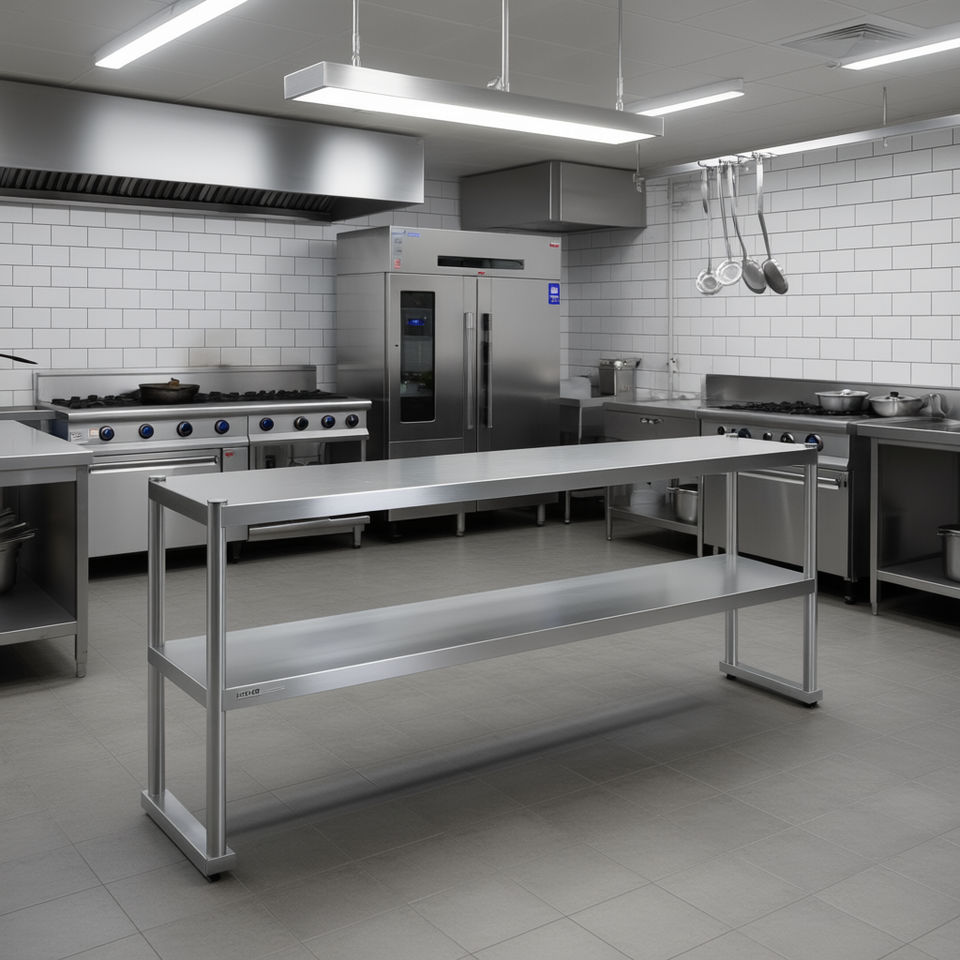 Tavolo da lavoro a doppio ripiano in acciaio inox 12x72 pollici per uso in cucina e ristorante