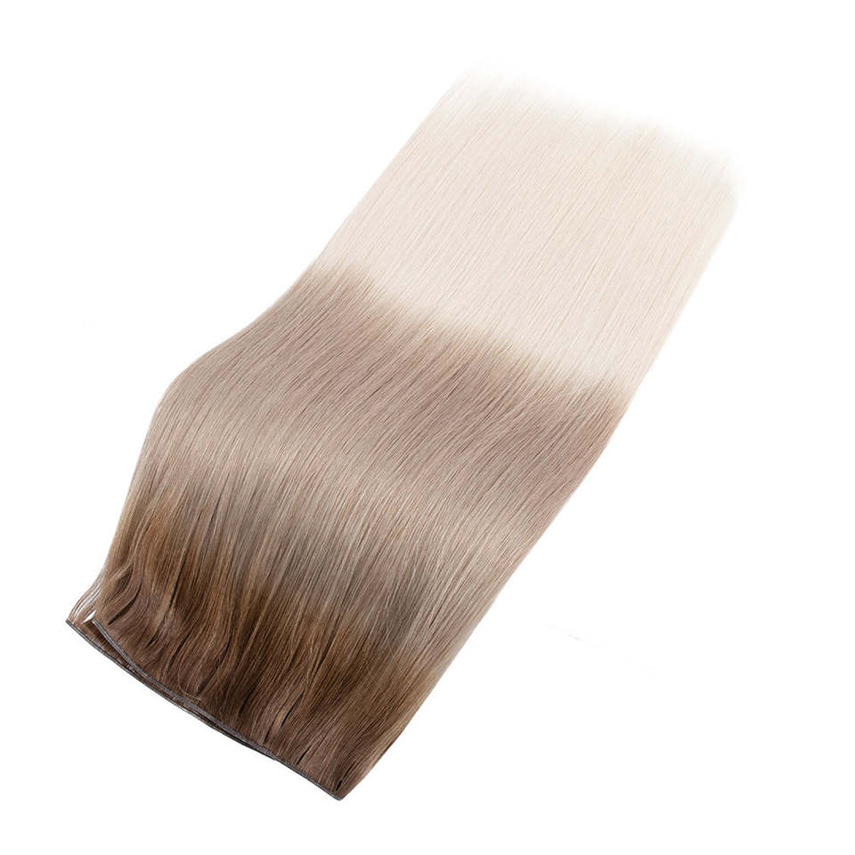 Extension di capelli umani Remy vergini europei a doppia trama, invisibili, lisci come seta, sbiancati, senza reso
