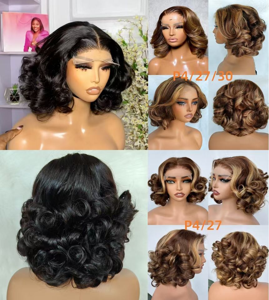 Parrucca Bob Corta con Chiusura in Pizzo 5*5 Brasiliana Senza Colla, Bionda 200% Ricci Morbidi Ondulati, Parrucche di Capelli Umani All'Ingrosso
