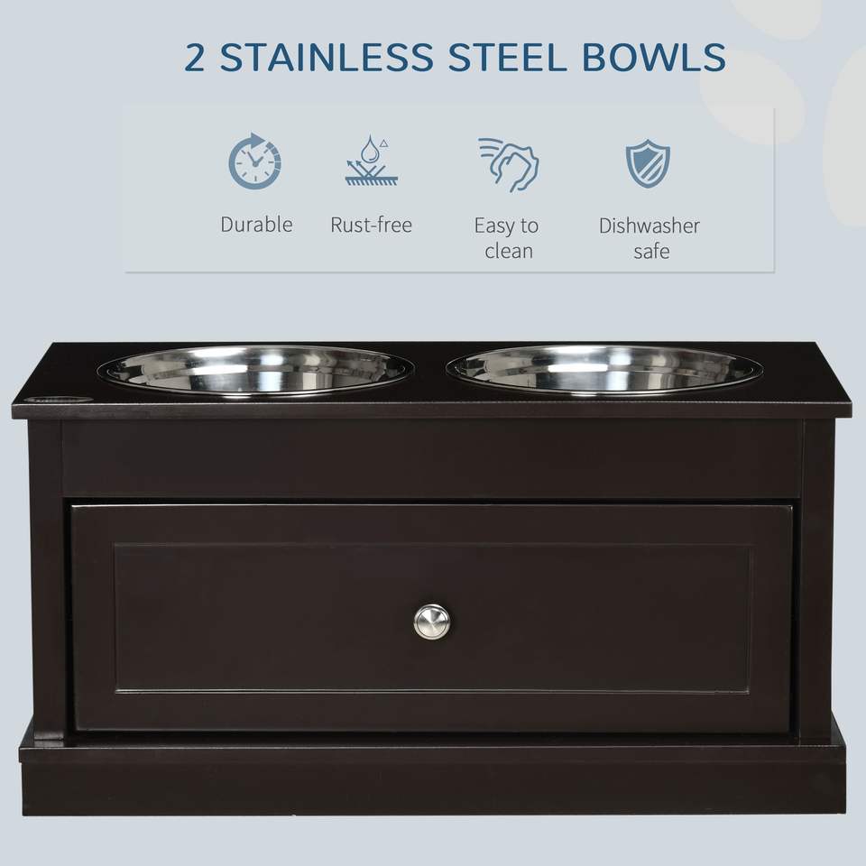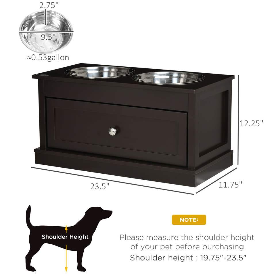 Stazione di Alimentazione Doppia Rialzata per Cani con Cassetto Portaoggetti e 2 Ciotole in Acciaio Inossidabile per Cani di Taglia Grande