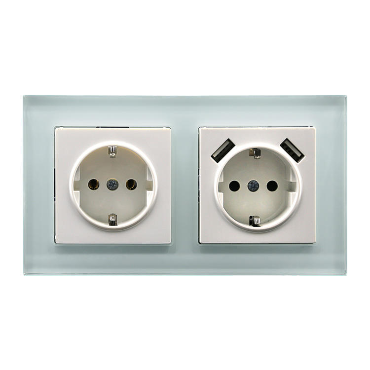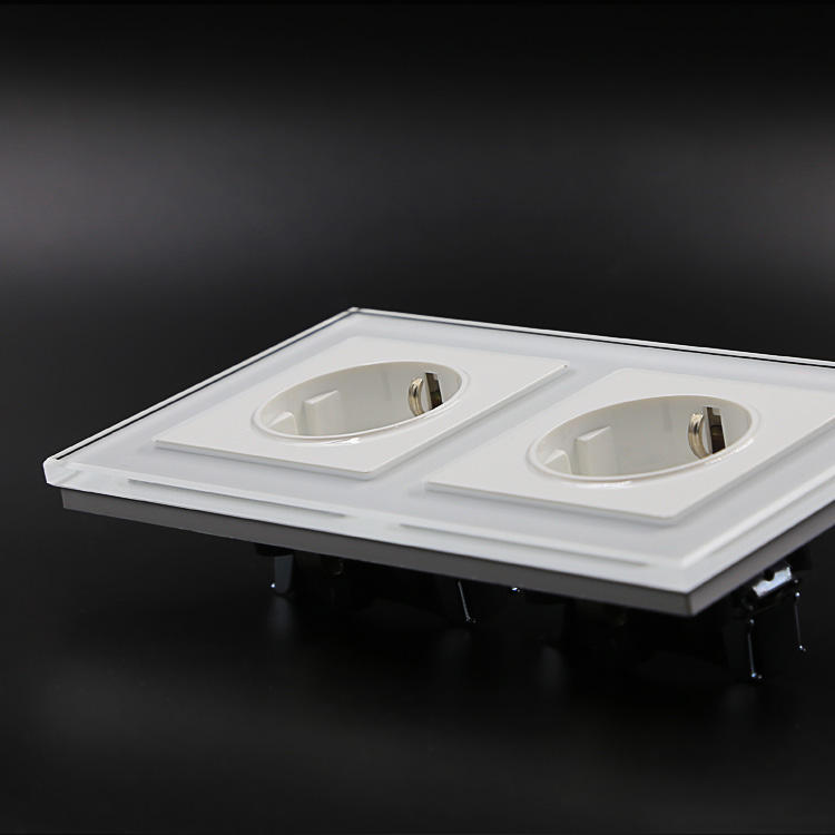 Presa a Muro Europea Doppia 16A in Vetro Temperato con Design Lussuoso e Durevole, Interruttori a Parete BIHU con Pannello in Vetro