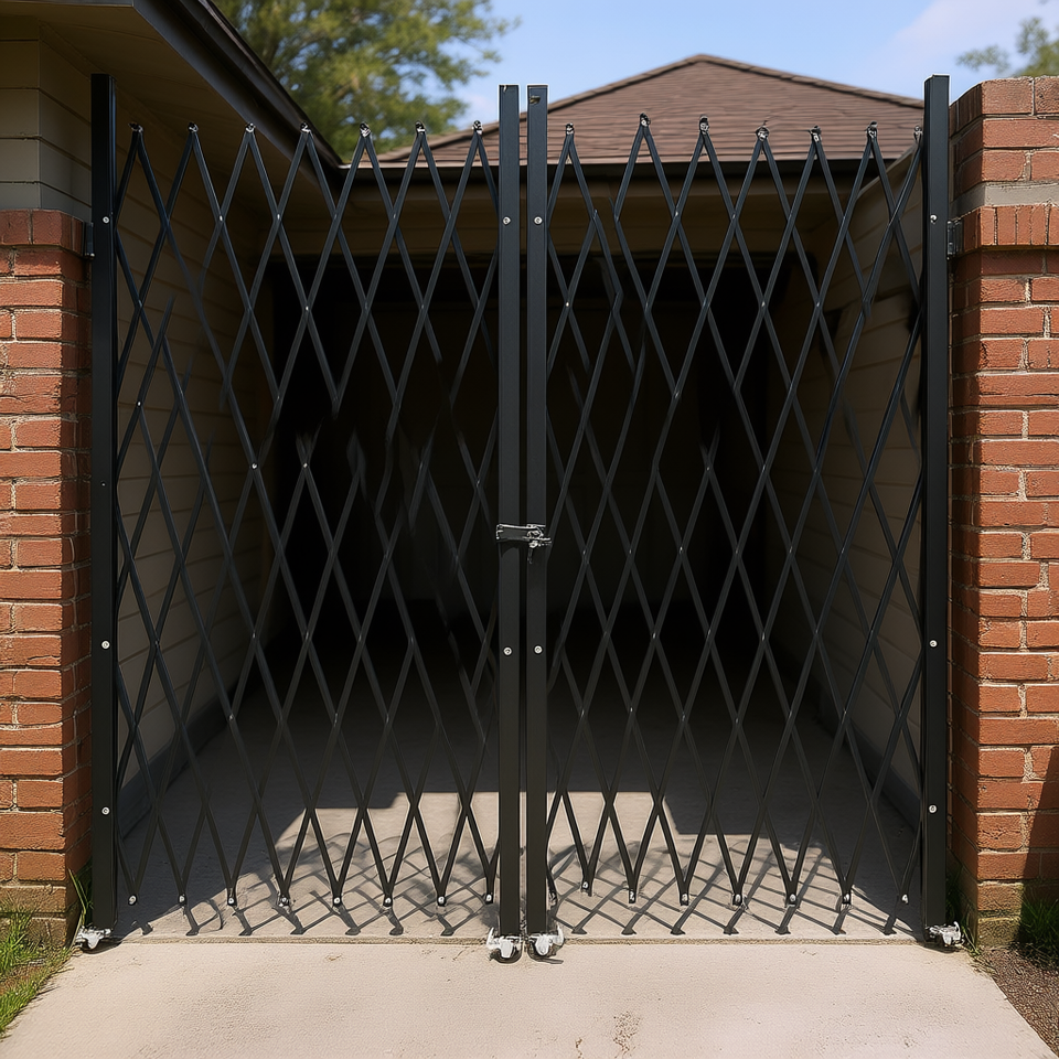 Cancello di Sicurezza Pieghevole in Acciaio a Fisarmonica 61 x 122 Pollici, Retrattile con Controllo Manuale per Garage e Capanno