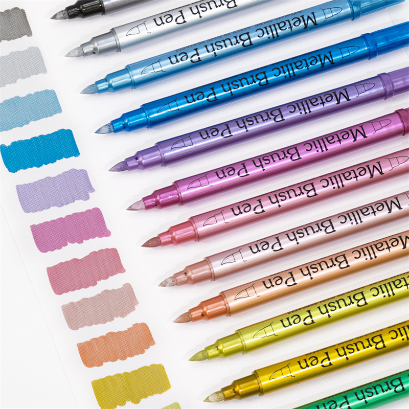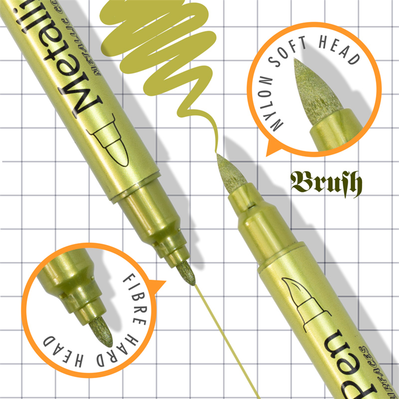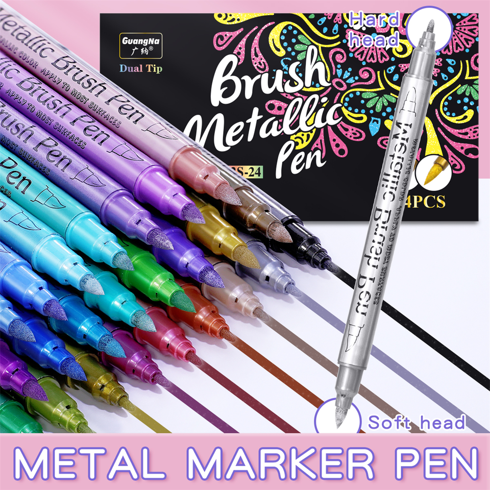 Pennarello Metallico a Doppia Punta 24 Colori con Punta a Pennello e Punta Fine, Inchiostro Cancellabile a Secco e a Umido per Uso su Carta
