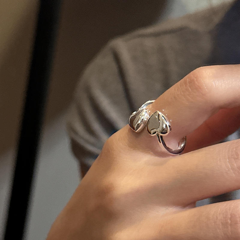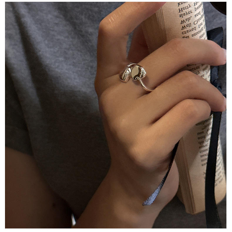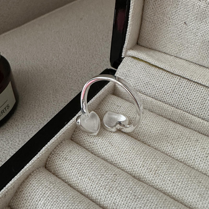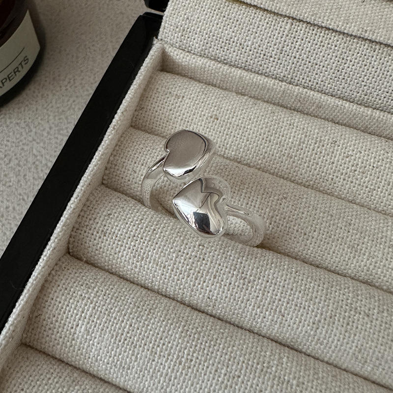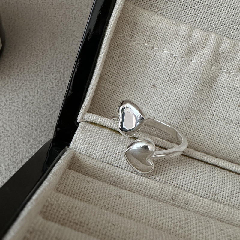Anello Regolabile a Doppio Cuore in Argento Sterling 925, Anello Minimalista Dolce, Regalo per Lei, Fidanzata, Versatile e Carino