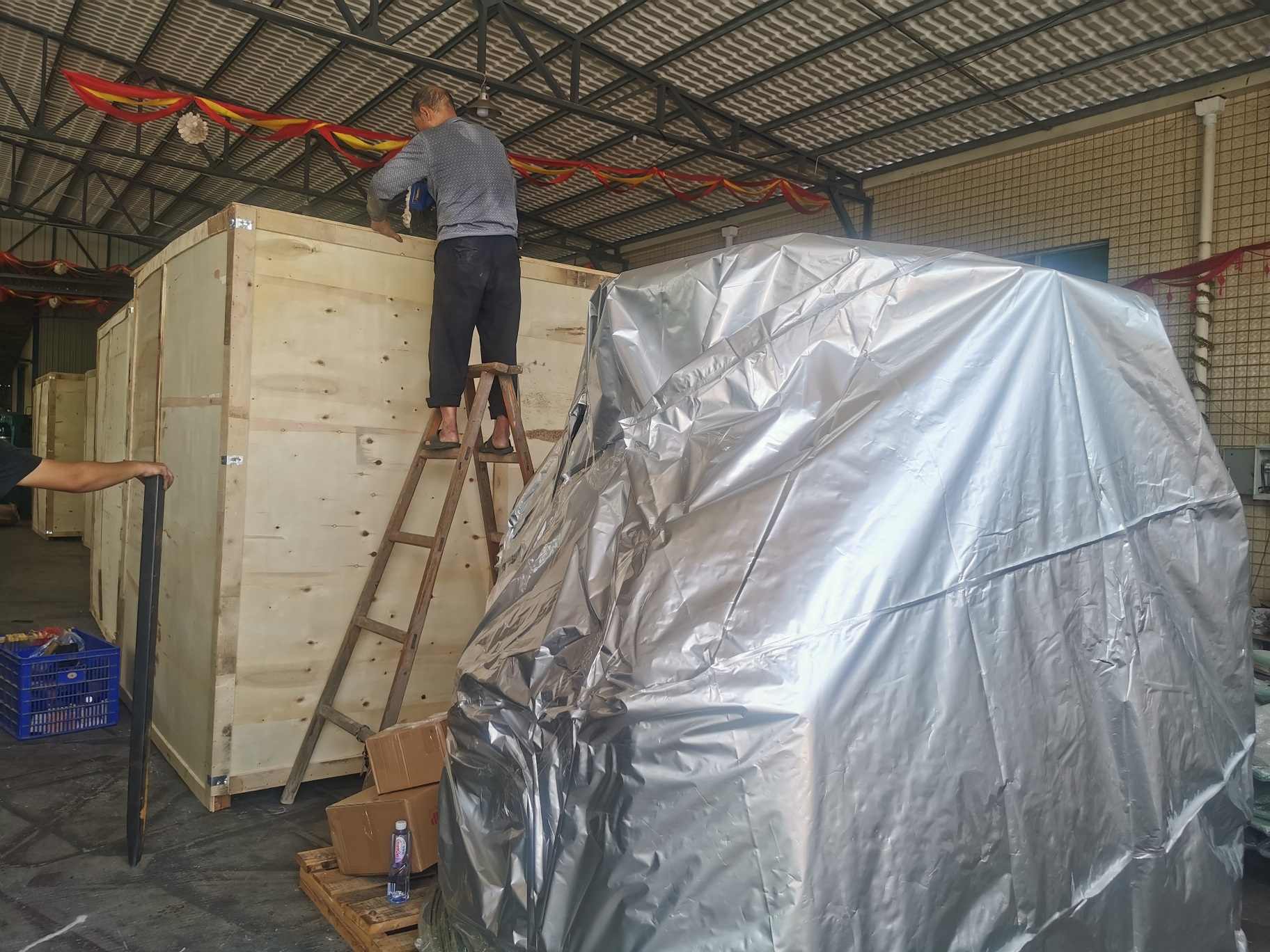 Machine surface cover PE film,then pack by seaworthy wooden packing