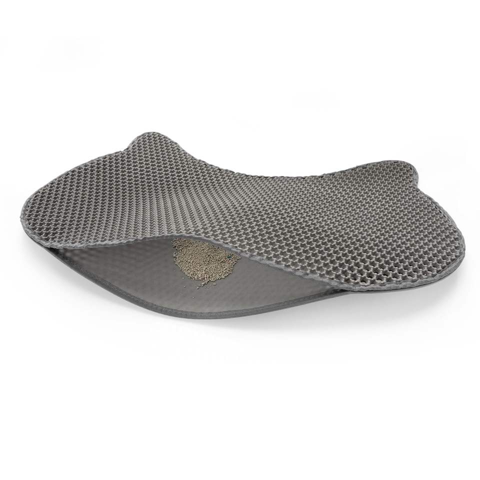 Tappetino per intrappolare lettiera per gatti con Design a doppio strato con testa di gatto impermeabile facile da pulire accessorio per lettiera per gatti grigio scuro