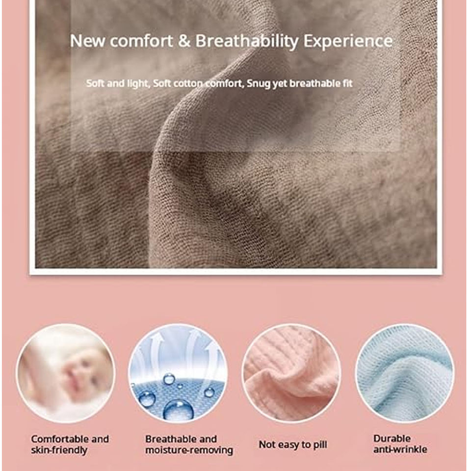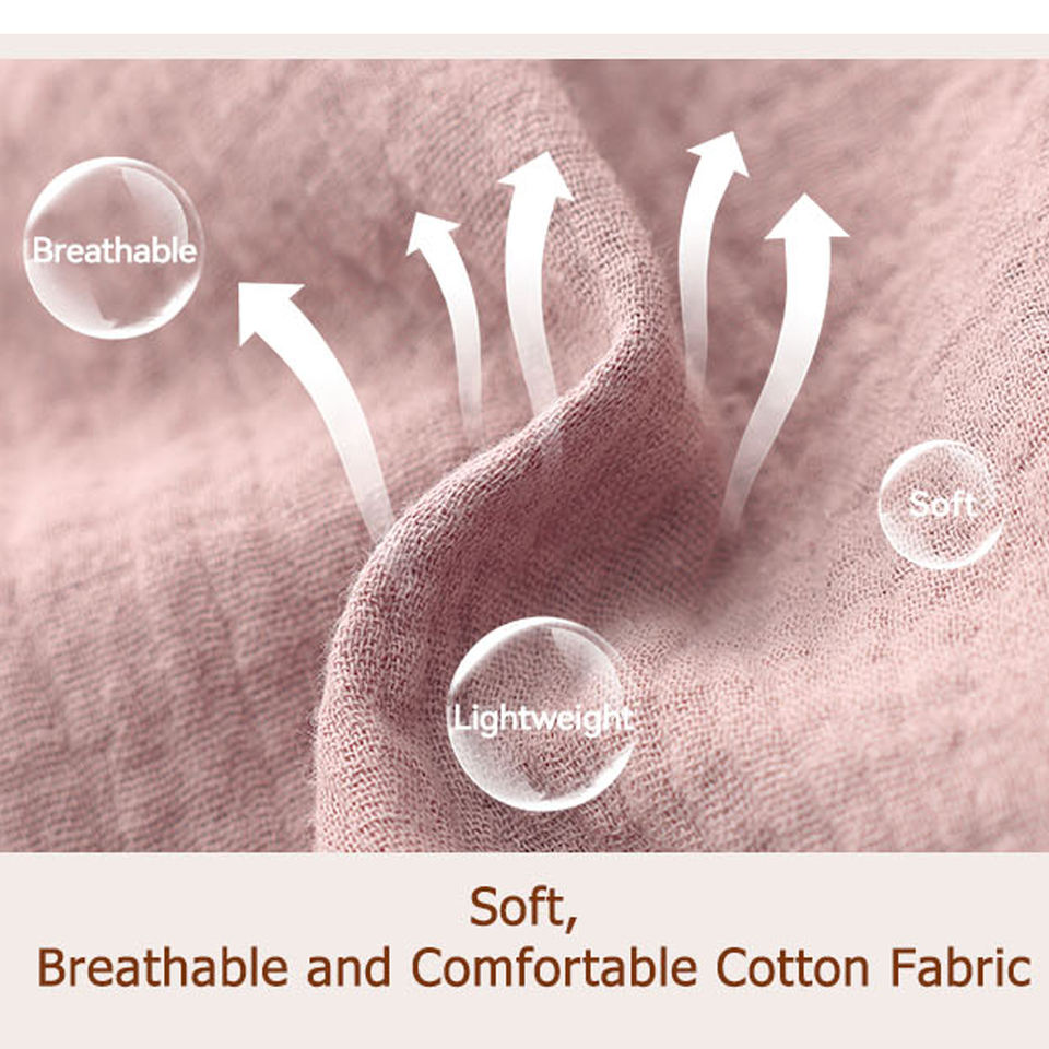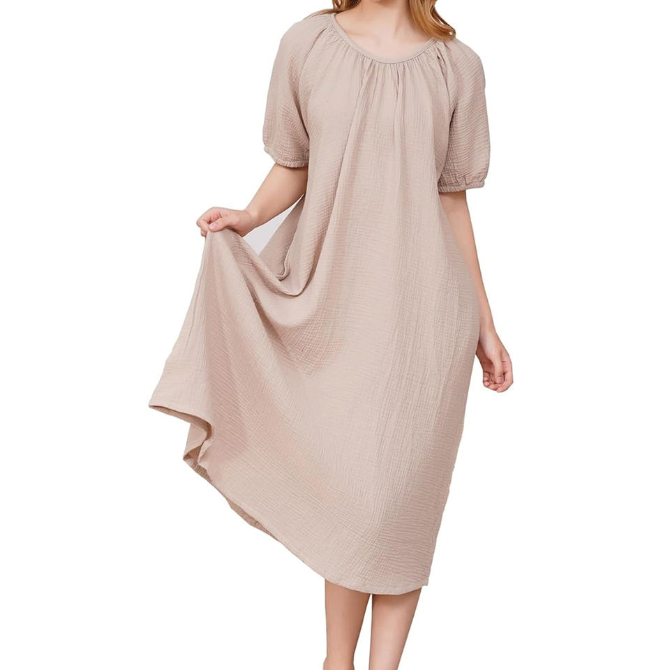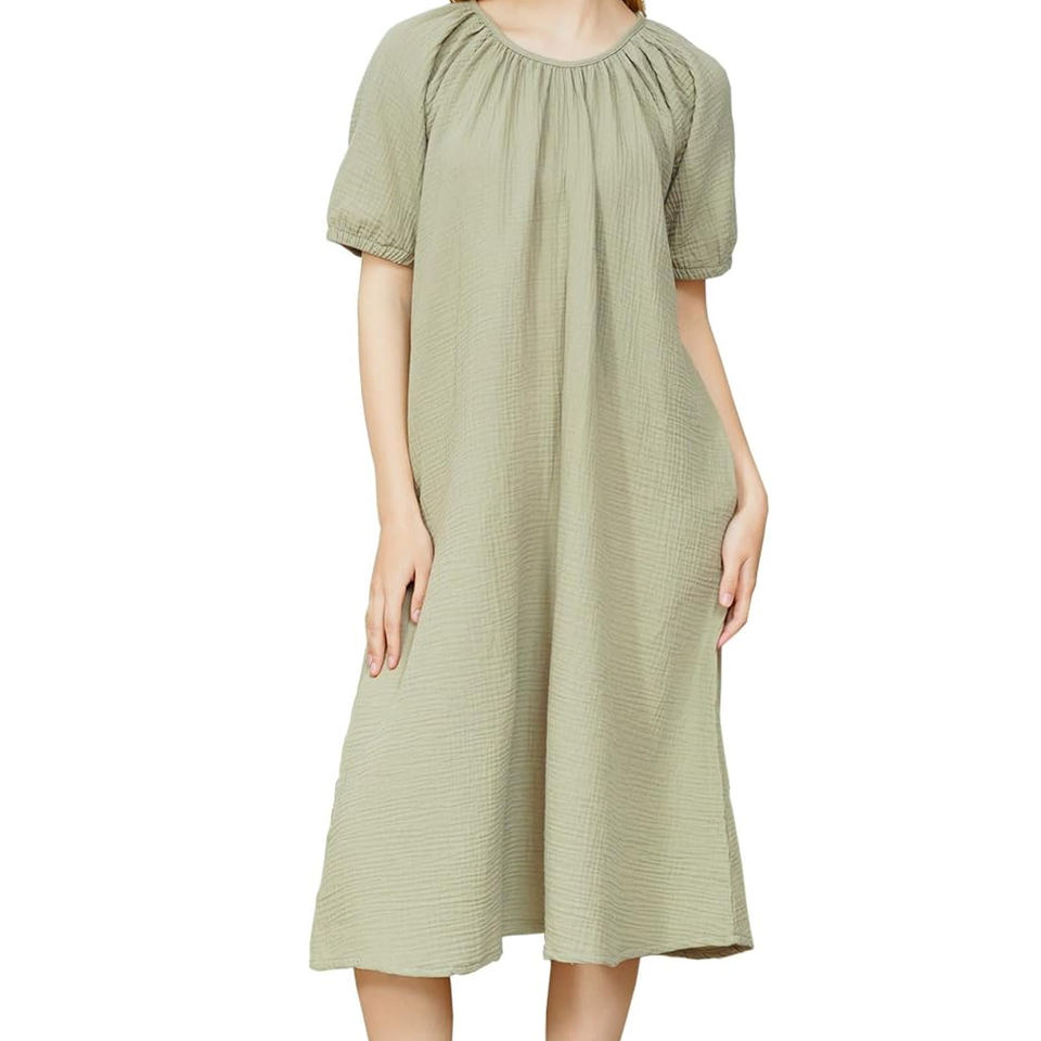 Vestito da Notte in Doppio Strato di Garza di Cotone da Donna, con Collo Rotondo Arricciato e Maniche Corte a Sbuffo, Vestito Casual Comodo per Casa