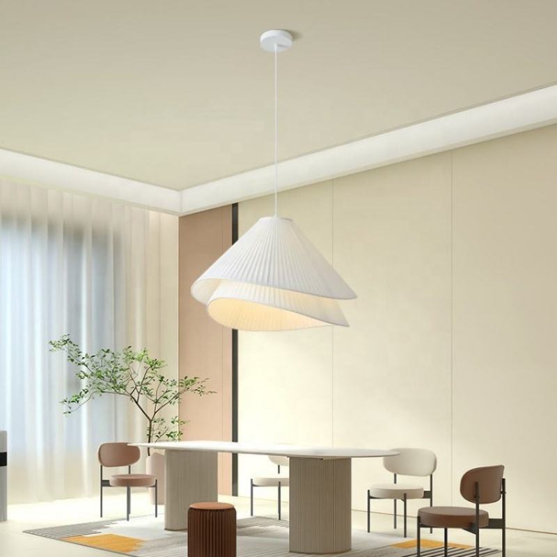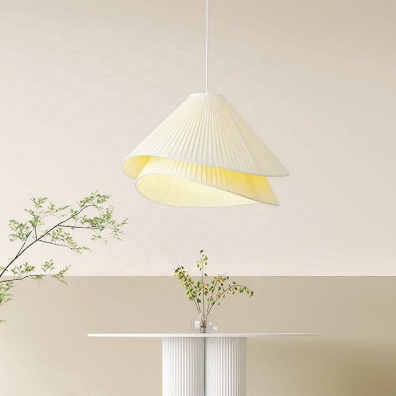 Lampada a Sospensione Lunga con Paralume a Campana in Tessuto a Doppio Strato, Luce Bianca Calda 3000K, per Camera da Letto e Casa