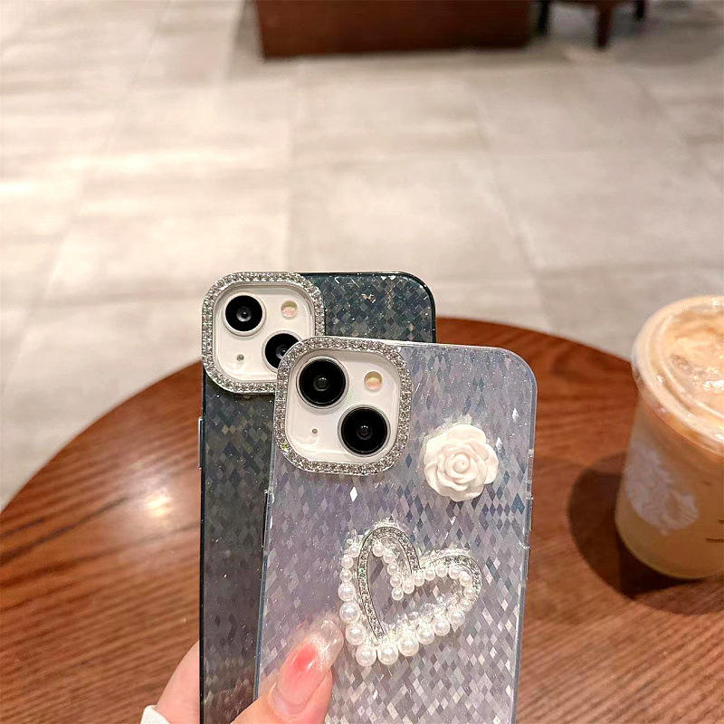 Custodia per telefono trapuntata a doppio strato per Apple 16 15 Pro Max per iPhone 13 compatibile con diamante scintillante 3D cuore Design protettivo