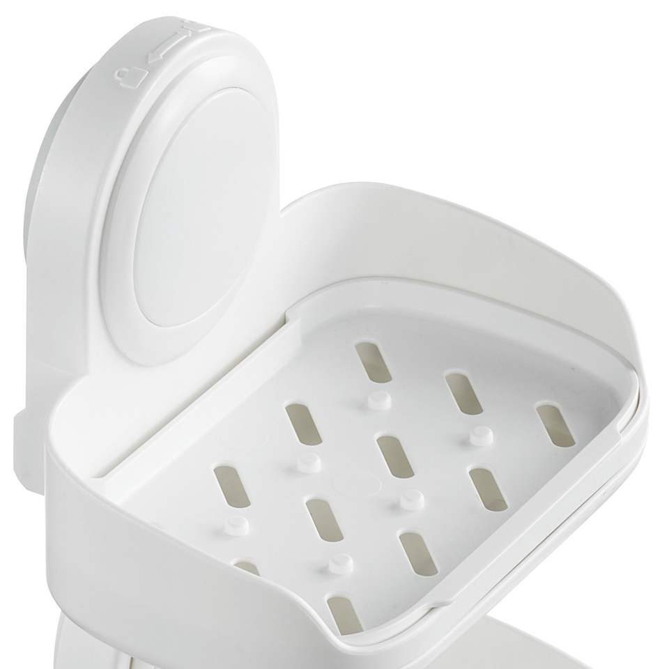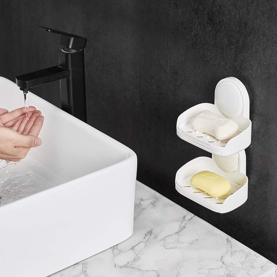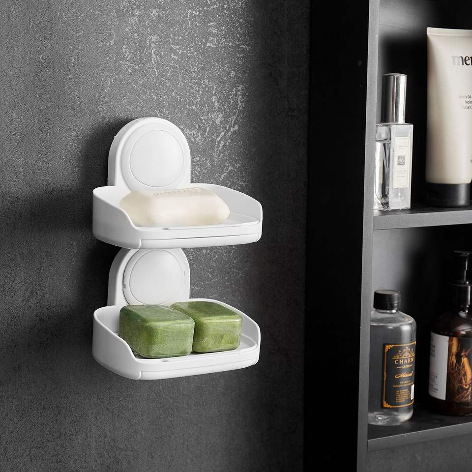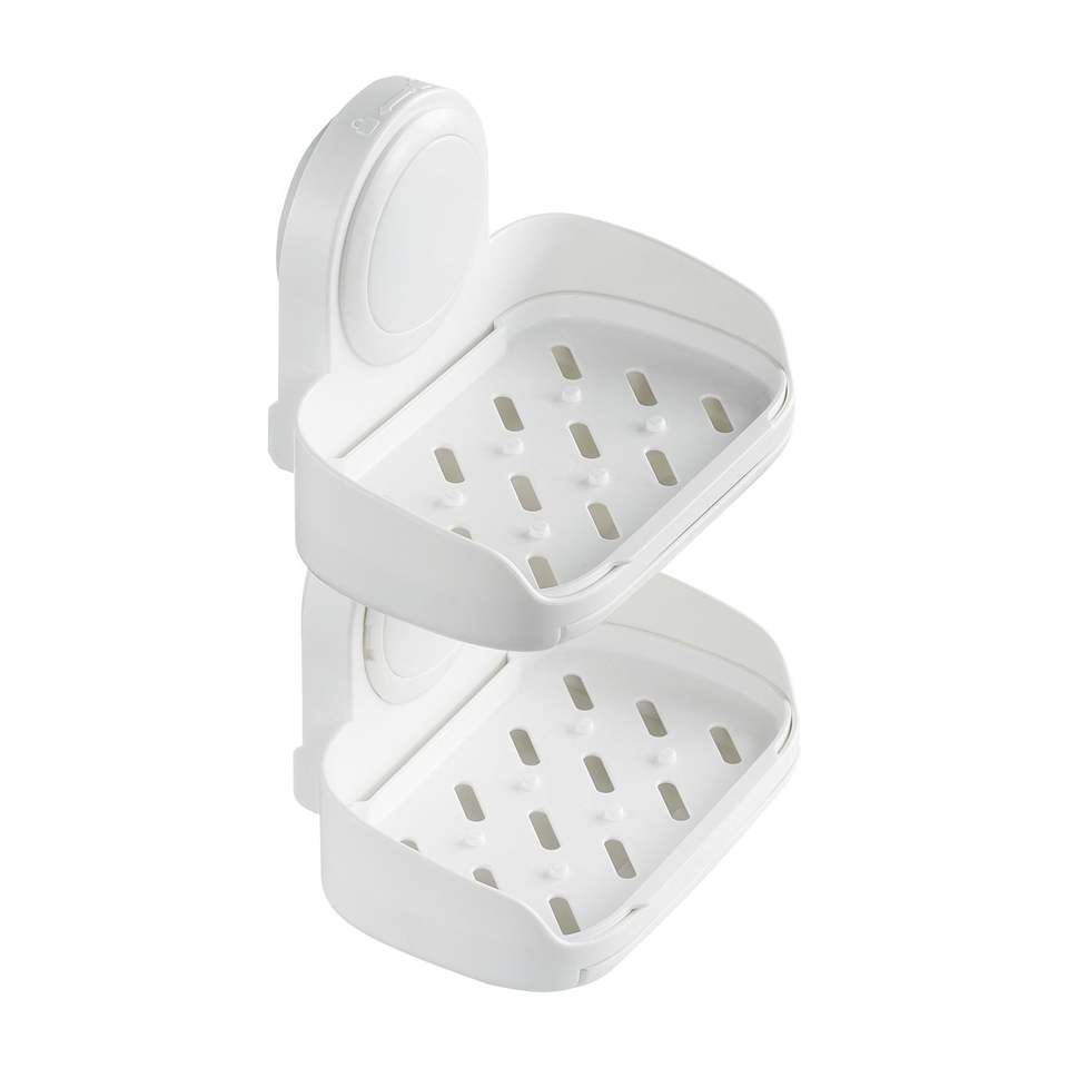 Portasapone a doppio strato da parete per doccia con forte ventosa, senza foratura, con doppio scomparto per spugne