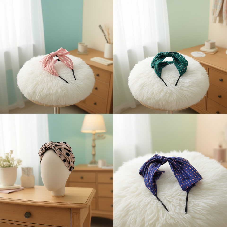 Fascia per capelli a doppio strato con fiocco grande, rosso, rosa, blu, verde, nero, beige, 12 pezzi, scatola da 600, Ref44091