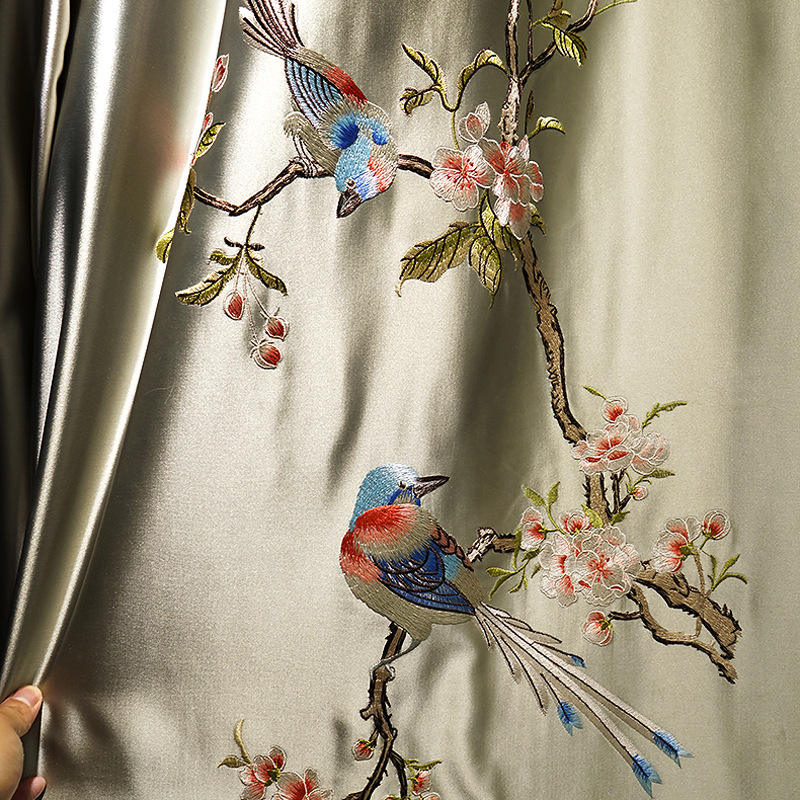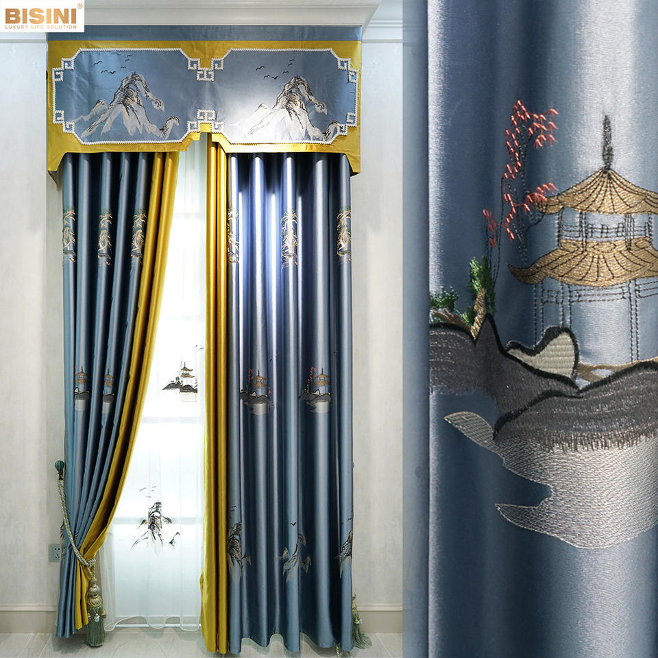 Tende Trasparenti a Doppio Strato con Stampa Paesaggistica Cinese su Cotone e Lino, Drappeggi per Camera da Letto con Mantovana