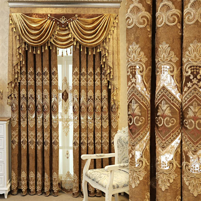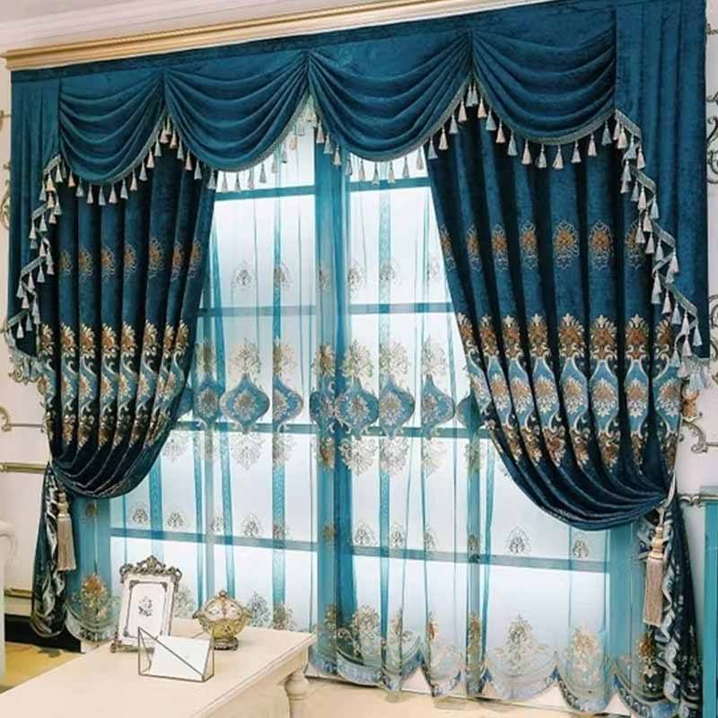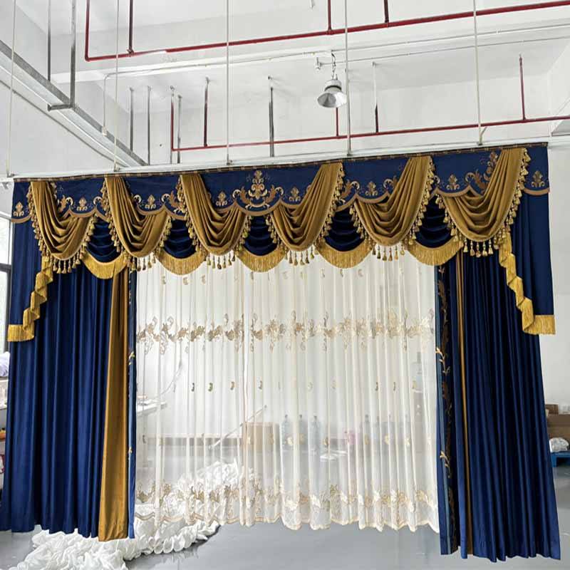 Double Layers Tracks Blackout Luxury Curtains with Sheer Wave Curtain 100% Polyester Valance Curtains for the Living Room