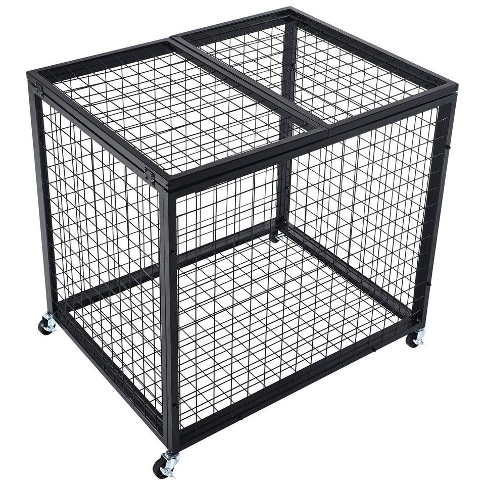 Double Lids Steel Storage Cart Indoor Outdoor Rolling Sports Ball Organizer for Basketball Equipment Holder Rack for Garages Gym