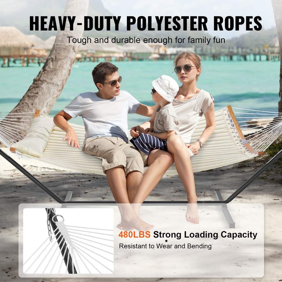 Amaca Doppia con Barra Curva Staccabile e Cuscino, Borsa per il Trasporto Inclusa e Supporto Portatile