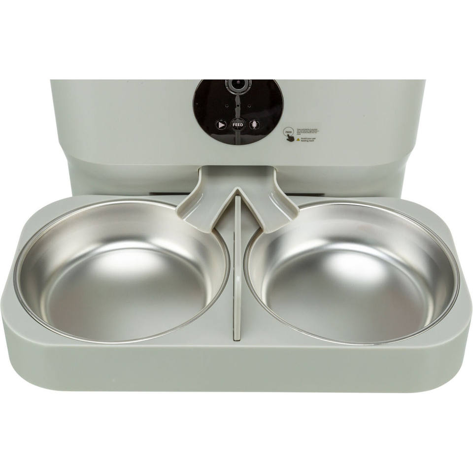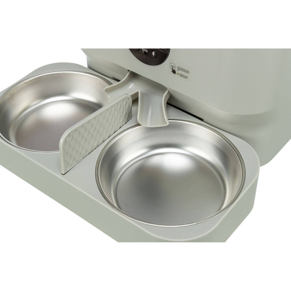 Doppia ciotola per animali domestici da 0,5 litri in acciaio inossidabile con base in silicone per cani e gatti, bianca