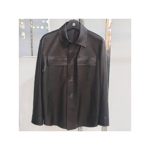 Double Pocket Lambskin Men's Shirt Jacket Single Color Korean Style Men's Jacket Button