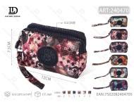Portamonete Rettangolare a Doppia Chiusura 7 Pollici in Microfibra Pelle Sintetica con Cinturino da Polso Motivo Floreale Mini Unisex