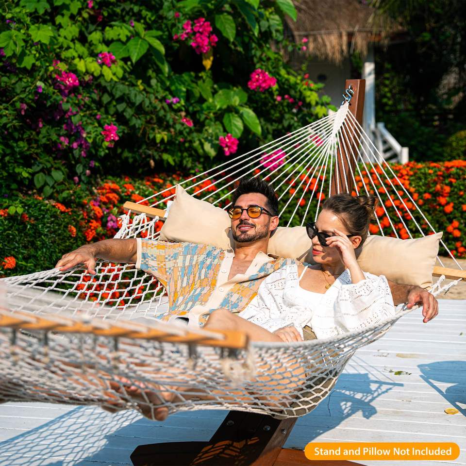 Amaca a Doppia Corda per 2 Persone, Tradizionale, da Esterno, in Corda di Cotone Intrecciata a Mano, con Barra Distanziatrice, Catene e Cinghie per Alberi, per Patio e Giardino, Capacità Massima 450 Libbre