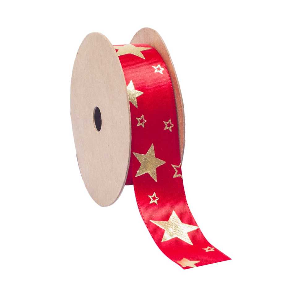 Double Satin Ribbon with Stars 25 m x 2.5 cm