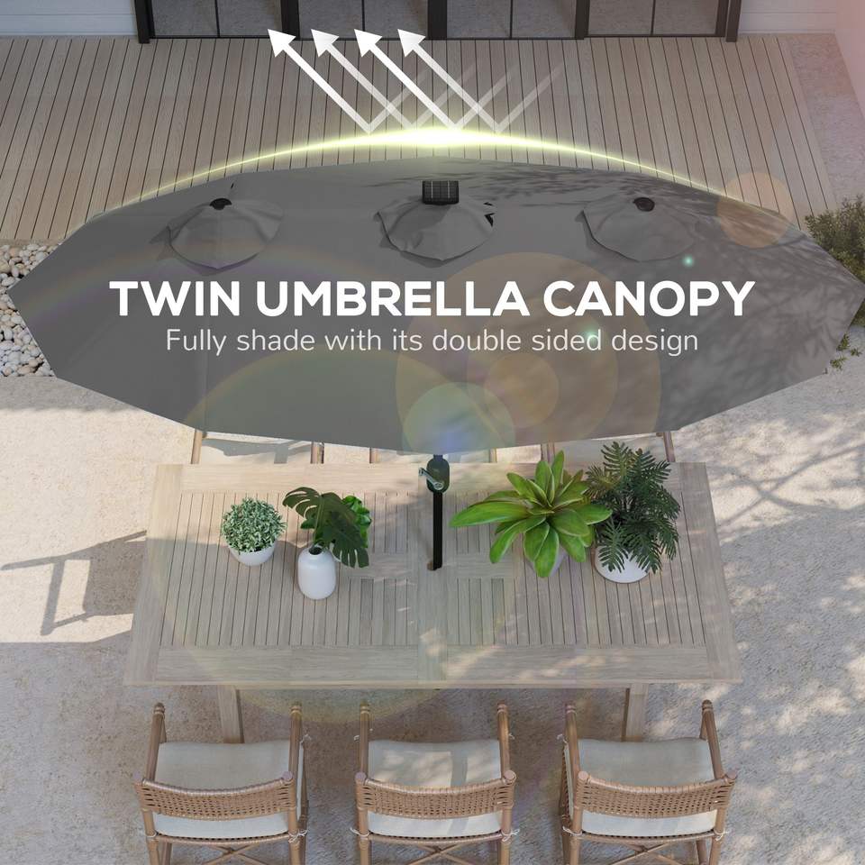 Ombrellone da Esterno a Doppia Faccia da 9,7' con Inclinazione e Manovella, Luce Solare a LED, 12 Stecche, Grigio