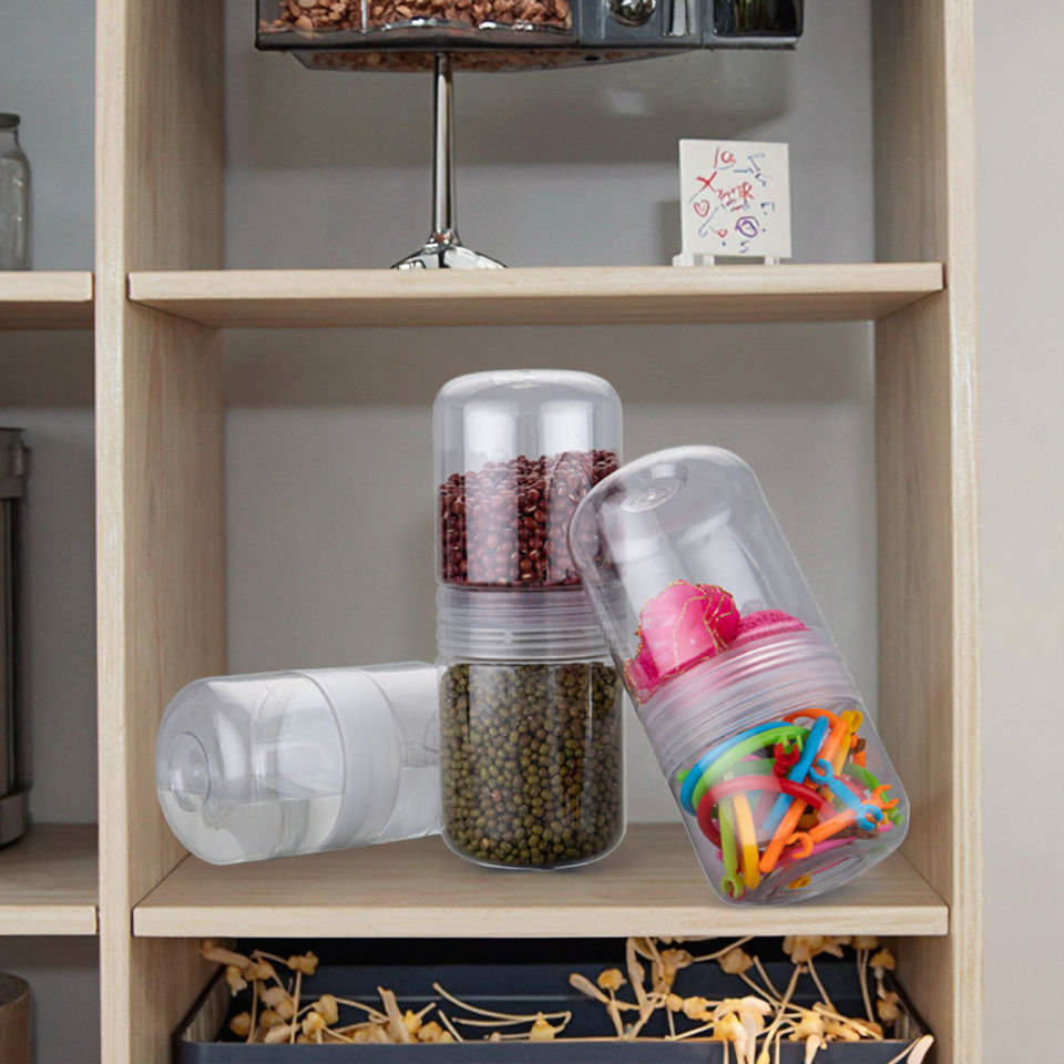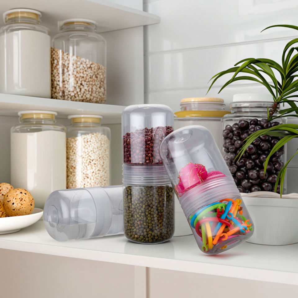 Barattolo in PET Trasparente a Doppio Lato, Design Creativo per Dolci, Caramelle, Noci, Legumi, Alimenti, Tè, Fiori, Chiusura Ermetica Centrale