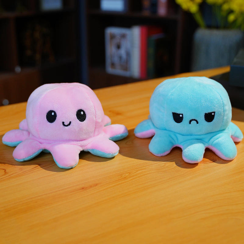 Mini bambola polpo a doppia faccia otto gambe grazioso viso arrabbiato regalo di compleanno reversibile polpo peluche
