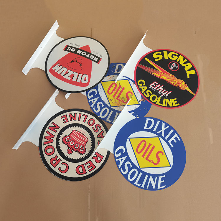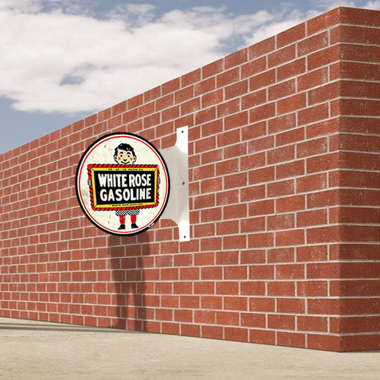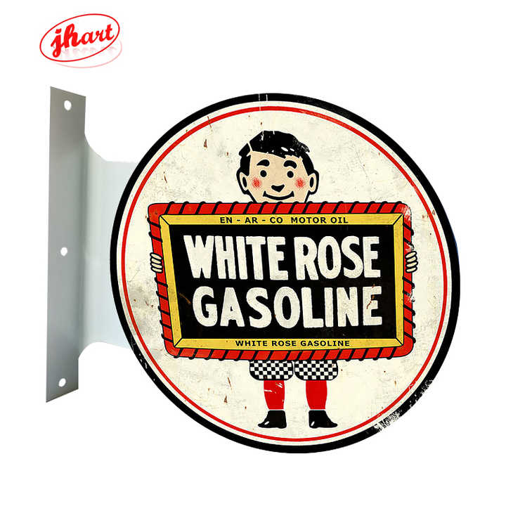 Targa in Metallo Stampata su Due Lati, Insegna Vintage WHITE ROSE GasOline, Targa Rotonda in Latta 30x40CM, Piastra in Metallo Anticata