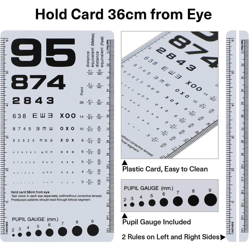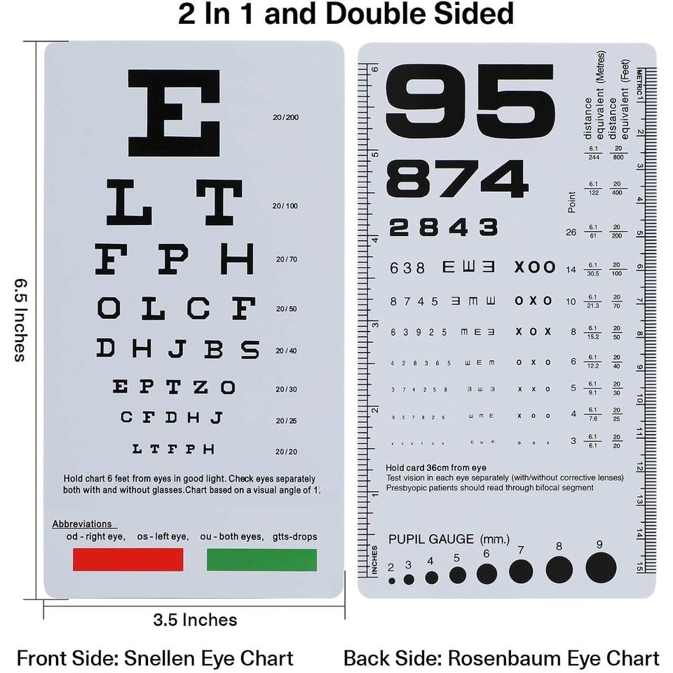 Carta doppia faccia Snellen e Rosenbaum carta 2 Pack robusto strumento di Test di visione tascabile in plastica per medici e uso domestico