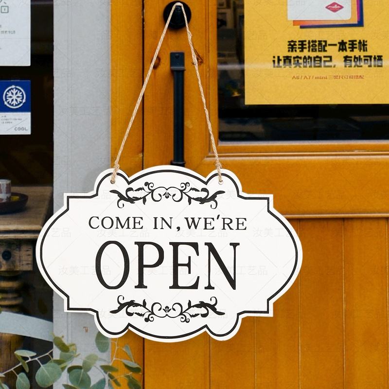 Double-Sided Wood Door& Wall Decor Plaque for Wedding Birthday Diwali Decor Open & Closed Sign for Shop Café Bar-Art Deco Style