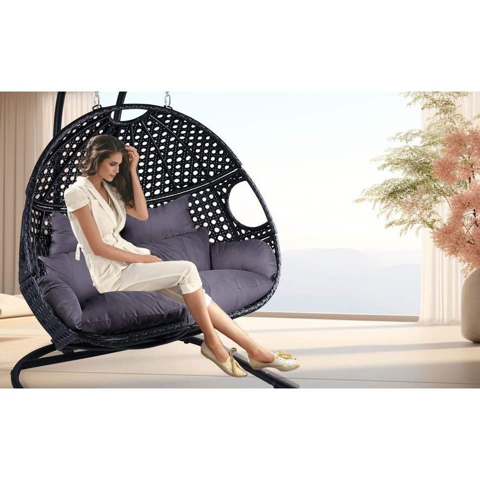 Double Swing Egg Chair Stand Indoor/Outdoor UV Resistant 530 Lbs Capacity Anti-Rust Wicker Rattan Frame 2 People Hanging Patio
