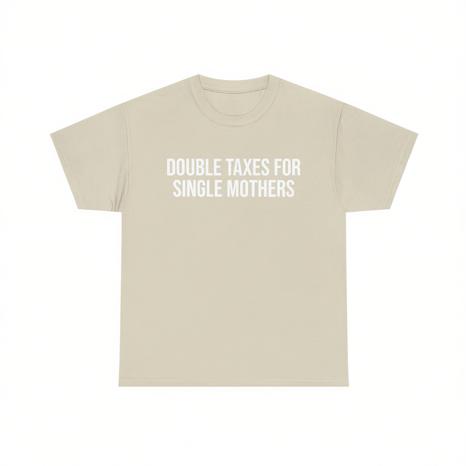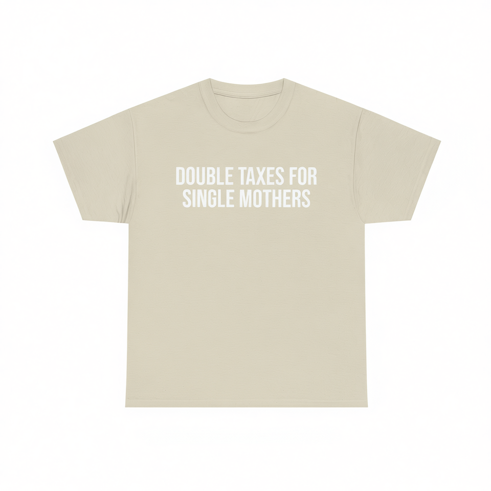 Maglietta con stampa 'Double Taxes For Single Mothers', divertente, ironica, sarcastica, con meme, abbigliamento promozionale