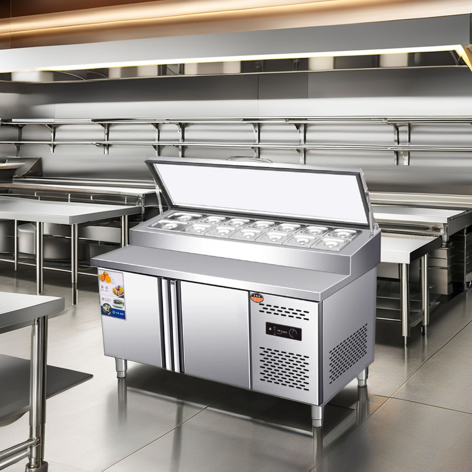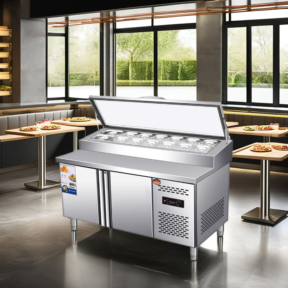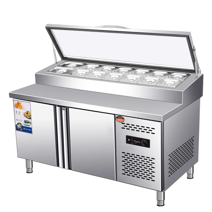 Tavolo per la preparazione del pane in acciaio inox a doppia temperatura tavola per la pizza