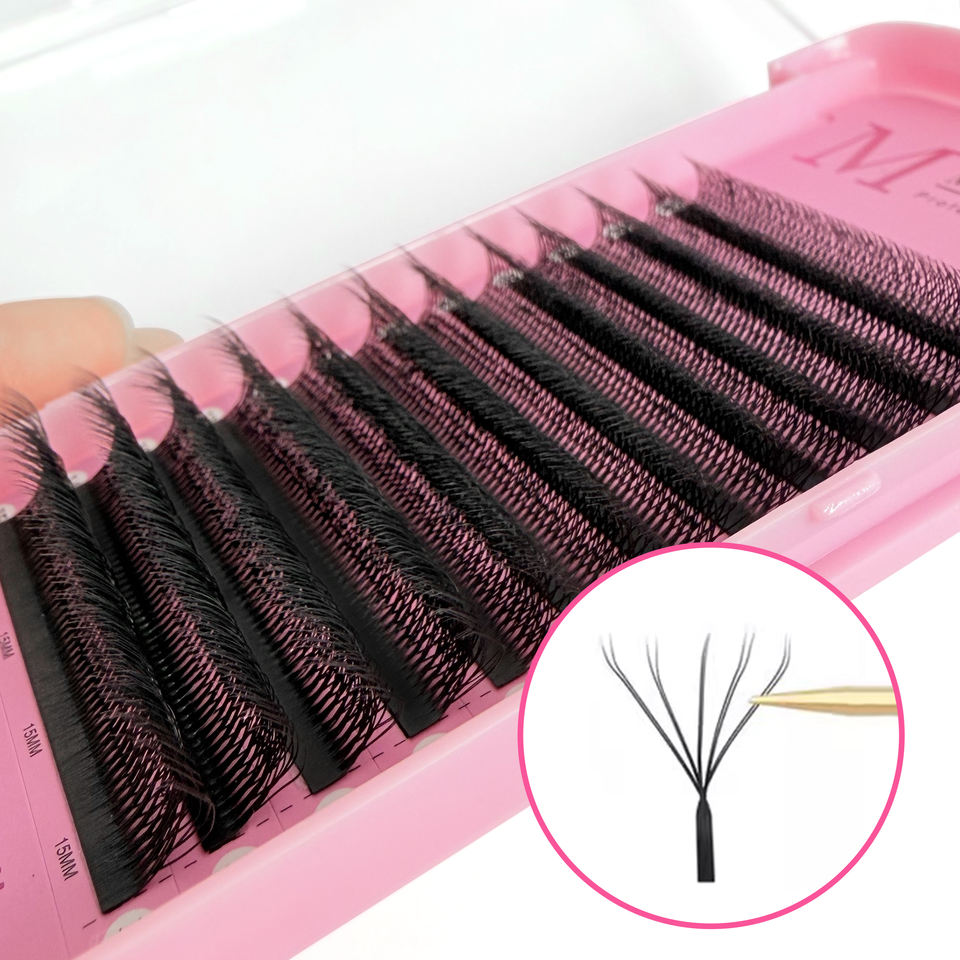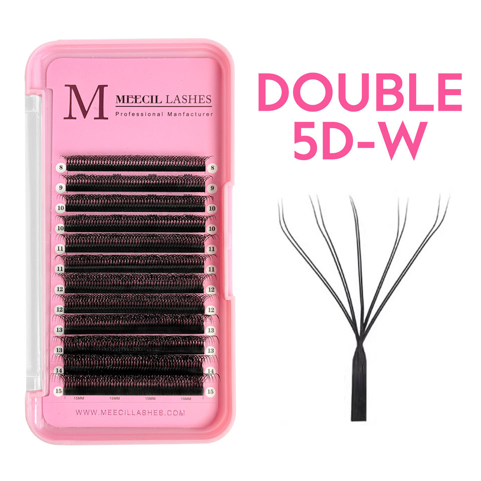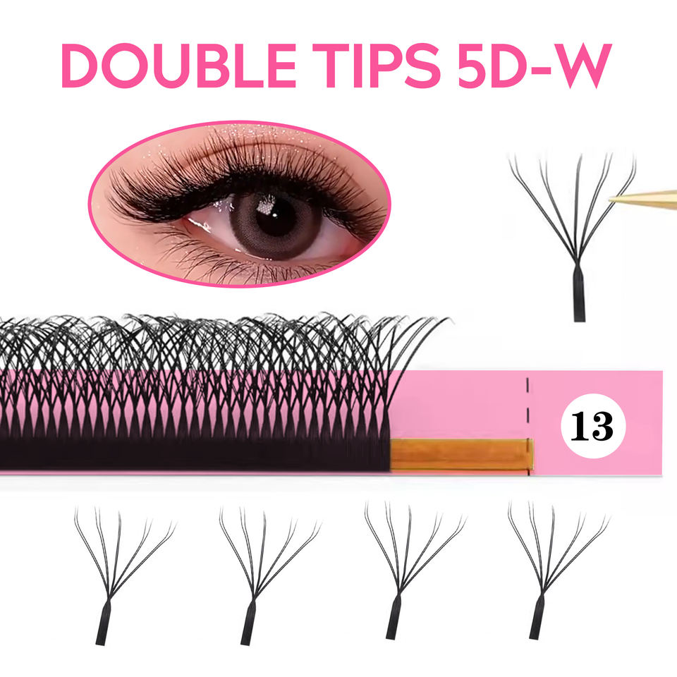 Ciglia a Doppia Punta 5DW Preformate Automatiche con Effetto Fioritura, Ciglia W 0.07mm Mix Tray C D Curl Opache