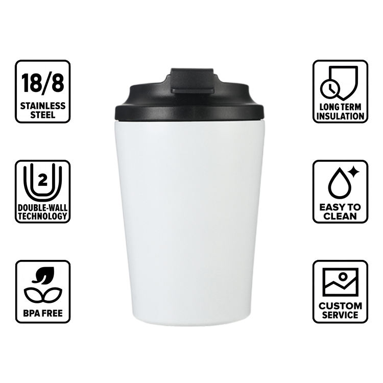 Tazze da Caffè Riutilizzabili in Acciaio Inox a Doppia Parete da 12 oz con Coperchio Antigoccia, Tazza da Viaggio Isolata Riciclabile da 12 oz