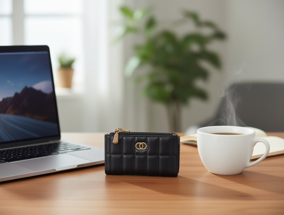 Portafoglio a doppia cerniera a quadretti da 7 pollici in materiale PU unisex per uso quotidiano