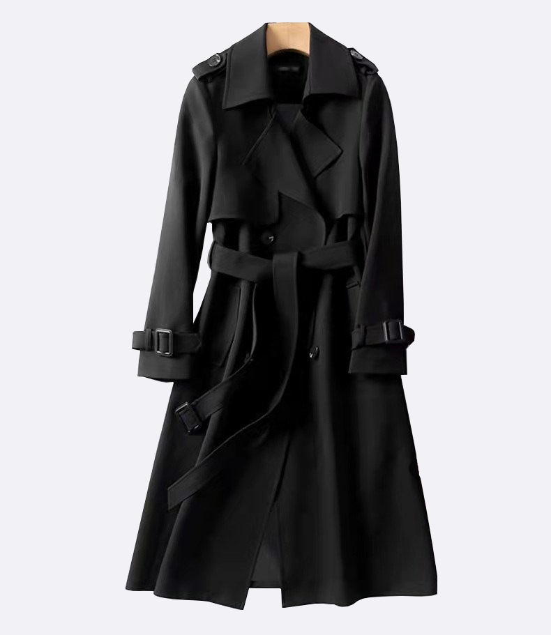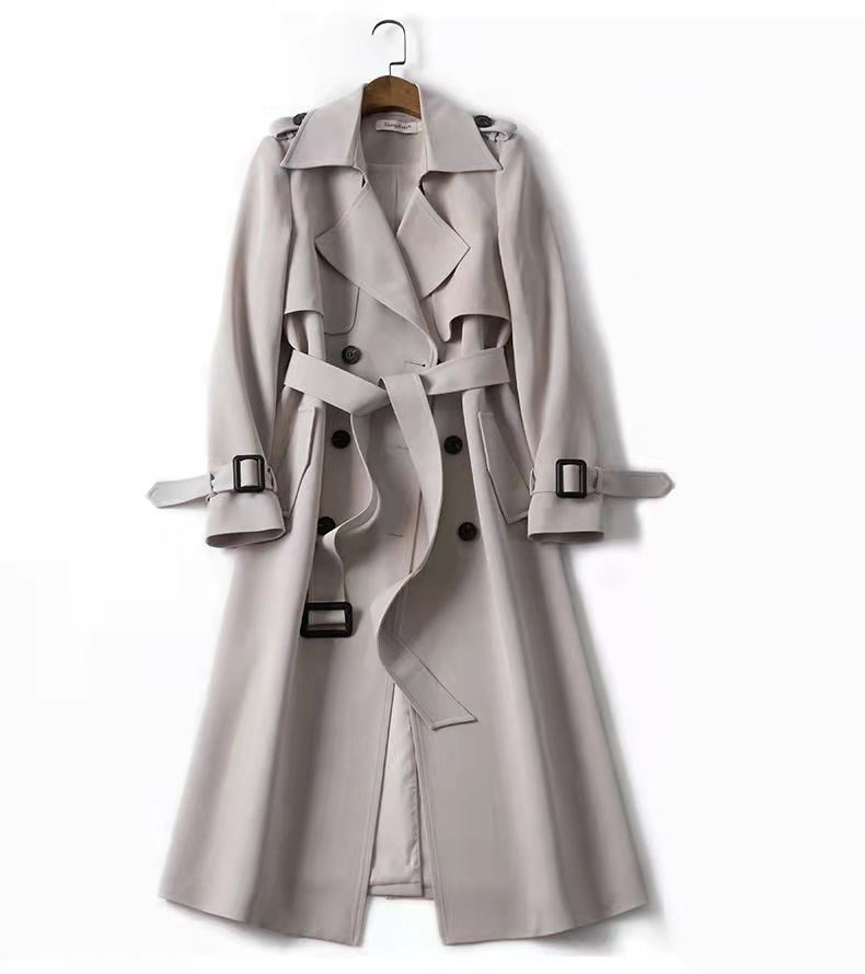 Double-breasted Plaid Lapel Slim-fit Wool Trench Coat Women Long Trench Coat Woman Trench Coat