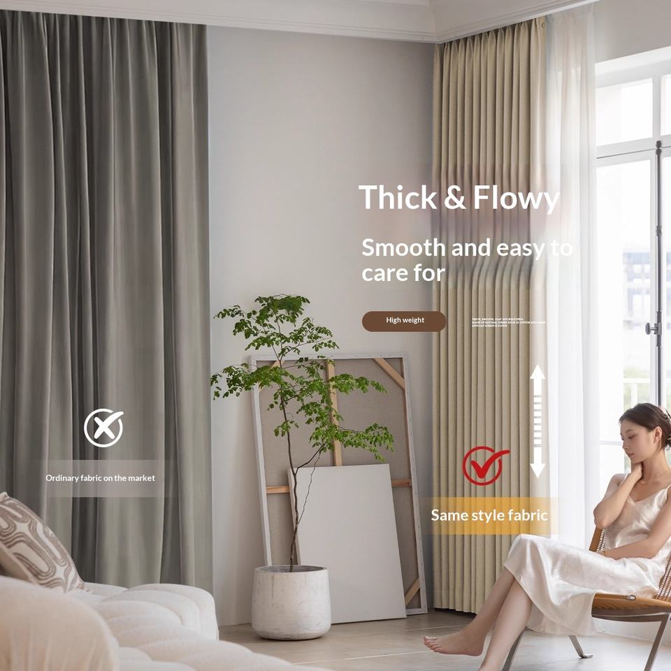 Tende di Lusso Moderne a Doppio Strato in Ciniglia dello Stesso Colore, Stile Crema, Ombreggiatura Totale, per Soggiorno e Camera da Letto, Shaoxing