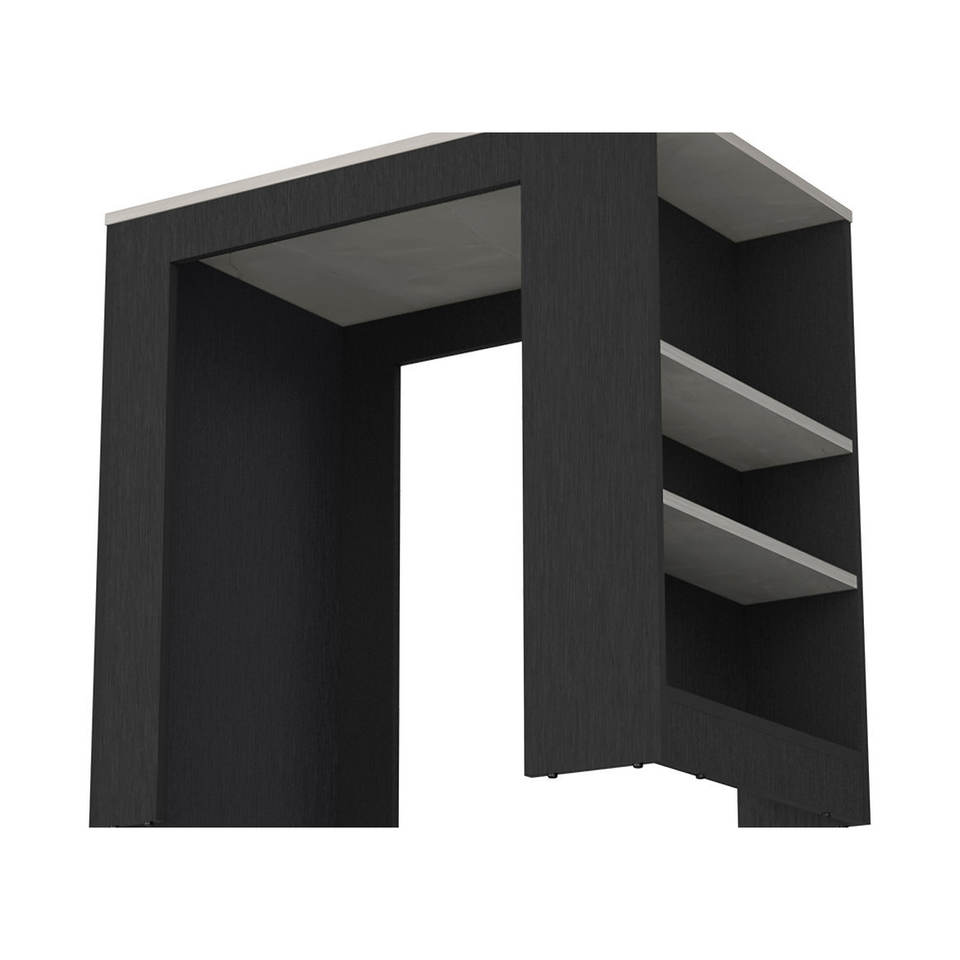 Carrello da cucina Doyle Black/Obiza Marble con tre ripiani laterali realizzato in rovere