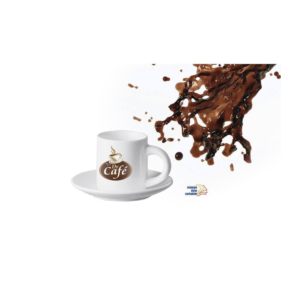 Dr Cafe Minimalist Ceramic Coffee Mug White Logo Screen Printed 120ml Tray for Giveaways Home Use Dishwasher Microwave Safe