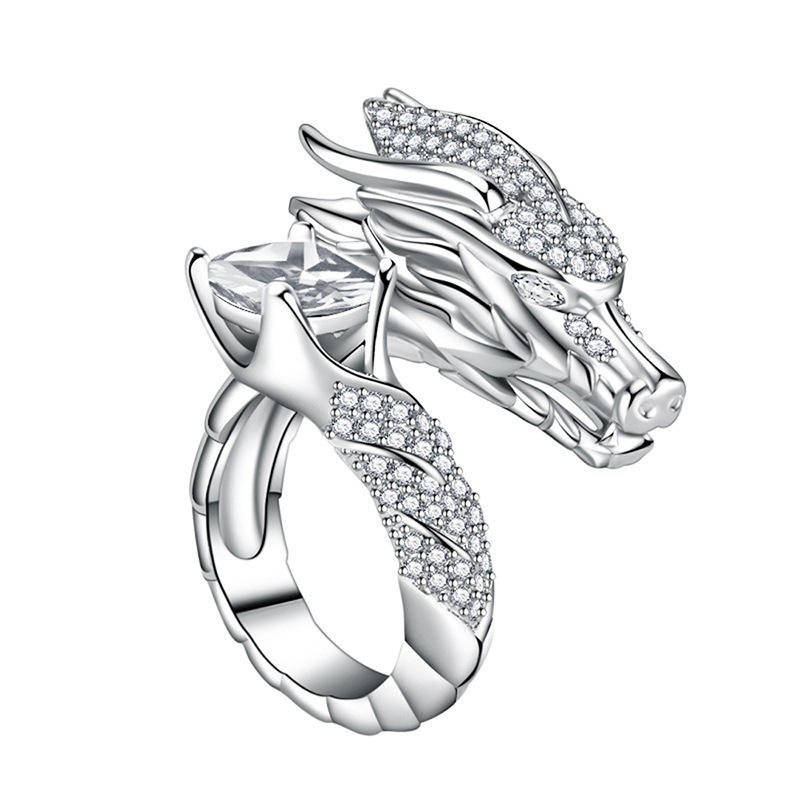 Anello Cocktail a Forma di Testa di Drago con Zirconia Cubica Rossa e Incastonatura a Pavé, Gioiello Unisex alla Moda, Idea Regalo