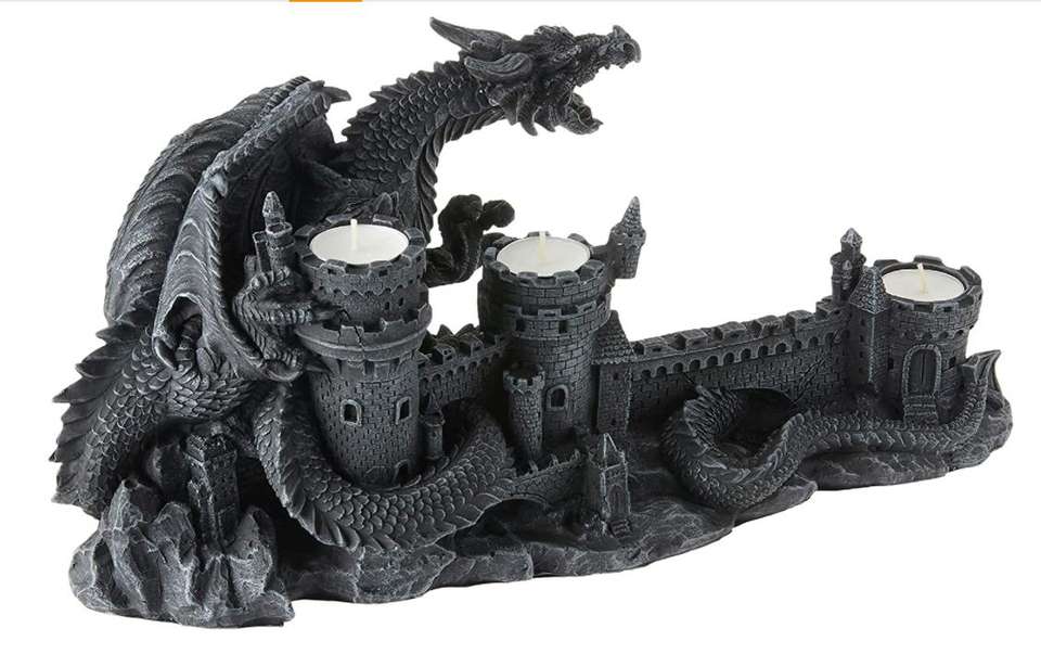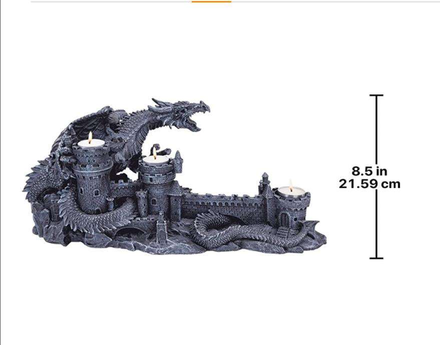 Statua portacandele gotica Dragon's Wrath, 18 pollici, poliresina, portacandele in poliresina di pietra grigia